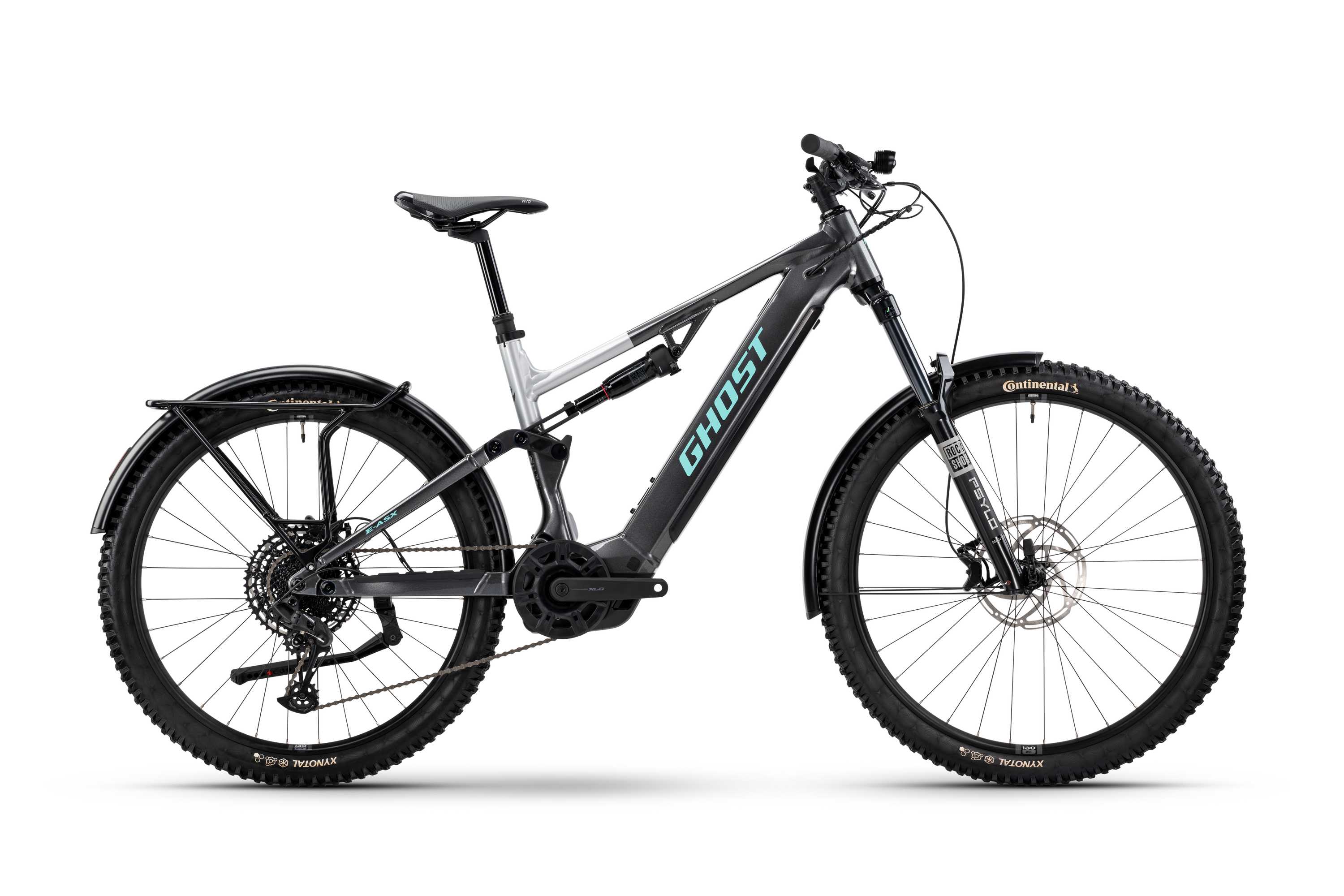| Perfekt für den Alltag - und die Flucht daraus. Das GHOST E-ASX Universal EQ ist ein echtes Crossover E-Bike, geeignet für die letzte Meile in der Stadt, genauso wie für den Offroad-Einsatz und Micro Adventures. Mit seinem geradlinigen, kantigen Design ist dieses vollgefederte E-Mountainbike ein echtes Fashion Statement. Dank Beleuchtung, Schutzblechen und Gepäckträger bist du für jede Mission gerüstet – egal ob im Großstadtdschungel oder auf unwegsamen Waldwegen. Die 160mm Federweg vorne und 150mm hinten sind eine echte Kampfansage an Kopfsteinpflaster, Bordsteine und Wurzeltrails, während der Bosch Motor und der 800WH Akku für die notwendige Power sorgen. Möge das Abenteuer beginnen! |